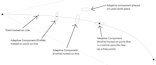- When you place an adaptive profile into another adaptive component, you can place it on a workplane or host it onto another element. If you host it to a reference line it will automatically orient itself to be prependicular to the line (or arc).