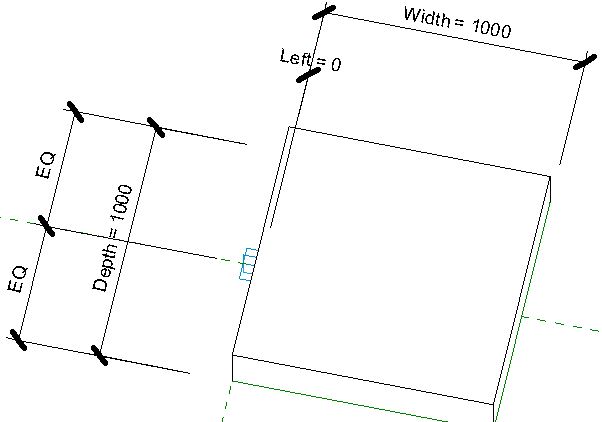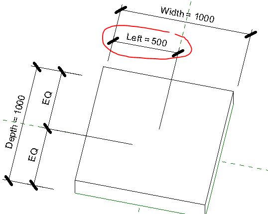 - The previously created 1 point adaptive box could have an additional parameter added to it - to allow it to be offset to the right from its centrepoint origin. At its simplest it just needs a parameter from centre to left side - if set at half the width value it will be centred; if set at zero it will be offset by half its width. You could put in a formula to make it offset using a checkbox but its not really necessary.