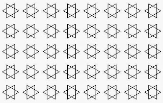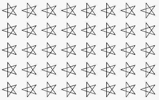 Going back to the original size, the number of points on the star can be changed. however, a five pointed star does not result in an interesting pattern once they overlap each other. Likewise, 4 or 3 pointed stars don't look good (crosses and triangles)
