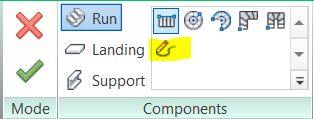 So, what happens if you want to create a non-standard stair that cannot be done using standard components? A tapering stair for example. Well, the component stair has its own sketch tool: the icon looks like a pencil with curvy line (highlighted below). That means you can sketch just one component - say a run or landing (both have the sketch option, but Support does not).