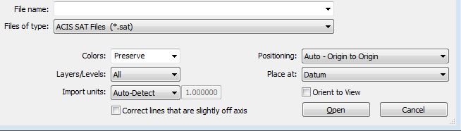 What this means is that we can no longer control units/scale or location. You have to know the units in advance, and make sure that they match the units of your current file exactly. However, you may occasionally get a dialog prompting you for import units if the units are not defined in the SAT file