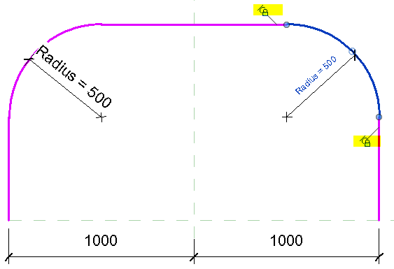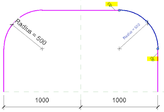 In previous versions of Revit, it was possible to retain tangential relationships, but in order to do so we had to undertake some serious trigonometry to calculate where the centre of each arc would be, and then the start and end points of each arc. If the lines are not orthogonal, it gets much more complicated, and pretty soon gives you a headache.