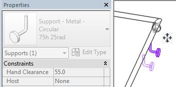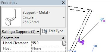 Supports will not be attached to a Top Rail, so if you require supports on the extension, make sure before you start that your railing has a 'Handrail' sub-element, and add the extension to the Handrail, not to a Top Rail. If you switch the railing to a type that does not have a Top Rail, the entire extension will disappear (if it was attached to a Top Rail in the first place). Plan ahead!