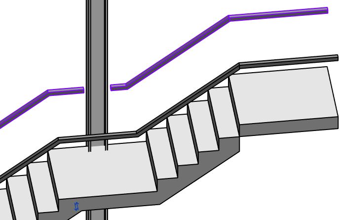 In this example, a railing runs through a column, which is not desirable