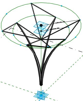 - If you select just the one structural element and repeat it, you get a straightforward radial pattern - this is not what we want (so, undo it)