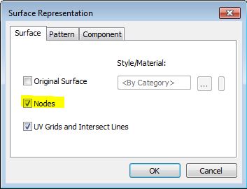 - Select the divided surface and hide its nodes again, so that they will not be visible in the project in any views. NB. if any divided path nodes are visible in the structure, you need to hide those back in the family and reload them (which can be painfully slow, so its better to do so before creating the repeater)
