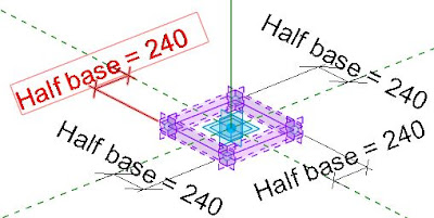 - Select all four dimensions and associate them to a parameter called 'Half base'