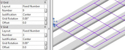 - In the project Browser, select the column family and change its 'Inside Radius' property to match half the spacing between nodes (platforms) - this should ensure that the overall size of the roof matches the divided surface grid size