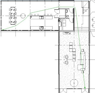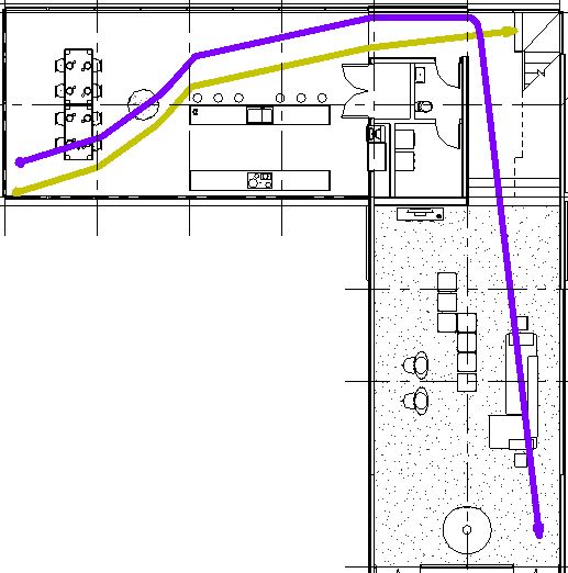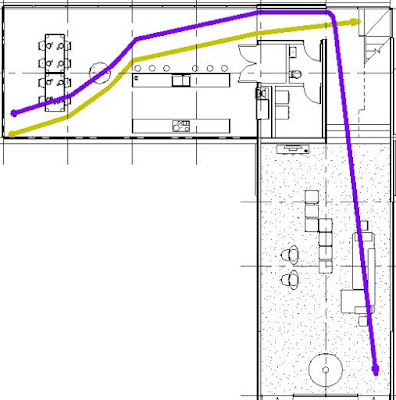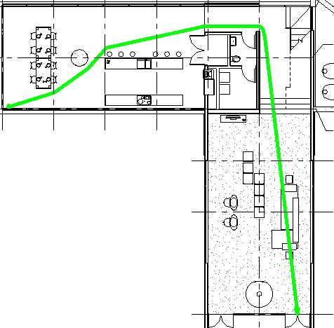 - Revit will again calculate the shortest path (around furniture/fixtures)
