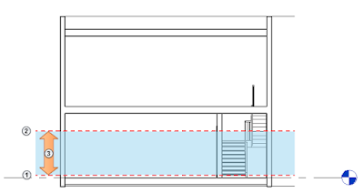 - The lower height is set to a default value of 203.2mm (8") above the view associated level (upper part of split level)