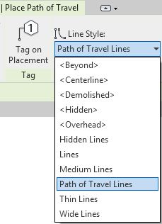 Once the tool is activated, the ribbon displays a Linestyle choice. It defaults to a linestyle called 'Path of Travel Lines'